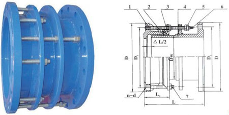 伸縮接頭系列產(chǎn)品屬金屬制品、其有較高的抗拉和抗壓強(qiáng)度,軟密封性能優(yōu)越,安裝拆卸方便等功能,被廣泛應(yīng)用于電力、冶金、化工、給排水和污水處理等行業(yè),主要作用于水泵于閥門和管道之間的連接。雙法蘭限位伸縮接頭在管道運(yùn)行中有一定的多向位移作用,對管道在運(yùn)行中由于熱漲冷縮、地殼下陷和受力產(chǎn)生著重要的伸縮補(bǔ)償作用,因此,伸縮接頭可以緩解管道運(yùn)行中的盲板推力,對管道起到一定的保護(hù)作用,特別是對管道的安裝和維修提供了極大的便利。但是,在水泵出口處和管道轉(zhuǎn)角處,在無固定支墩、無限位支墩和定向限為支墩支架的滑動管道連接中應(yīng)采用傳力接頭限位伸縮器(伸縮節(jié))和防拉脫限位橡膠接頭,因為傳力接頭通過傳力螺栓(即全絲螺栓)能把啟泵時的盲板推力傳導(dǎo)到泵和管道各部位,避免推力集中于管道轉(zhuǎn)角處或泵的近端,發(fā)生沖擊力損傷設(shè)備。